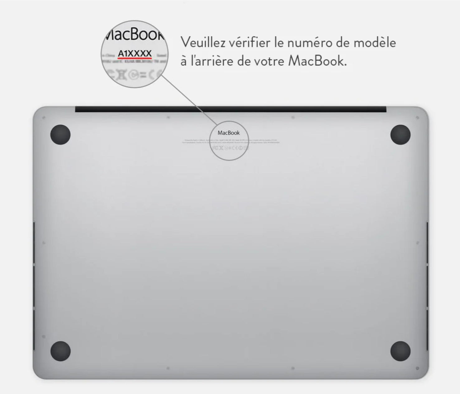 Vérifiez le numéro de modèle Axxxx au dos de votre ordinateur et comparez-le avec le modèle indiqué dans la fiche produit.